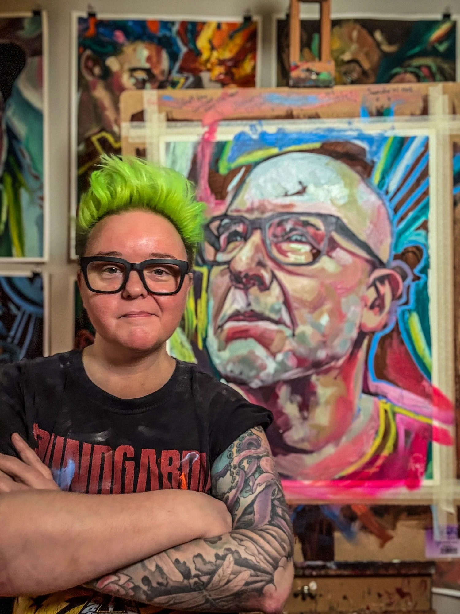 A spontaneous portrait of Gosia Weber, co-founder of • nook • gallery, painted live during Meet the Maker and finished in the early hours of the morning. This Studio Journal entry captures the full whirlwind story behind the painting from Parma Violets to wet paint warnings and celebrates creative community, colour, and connection.