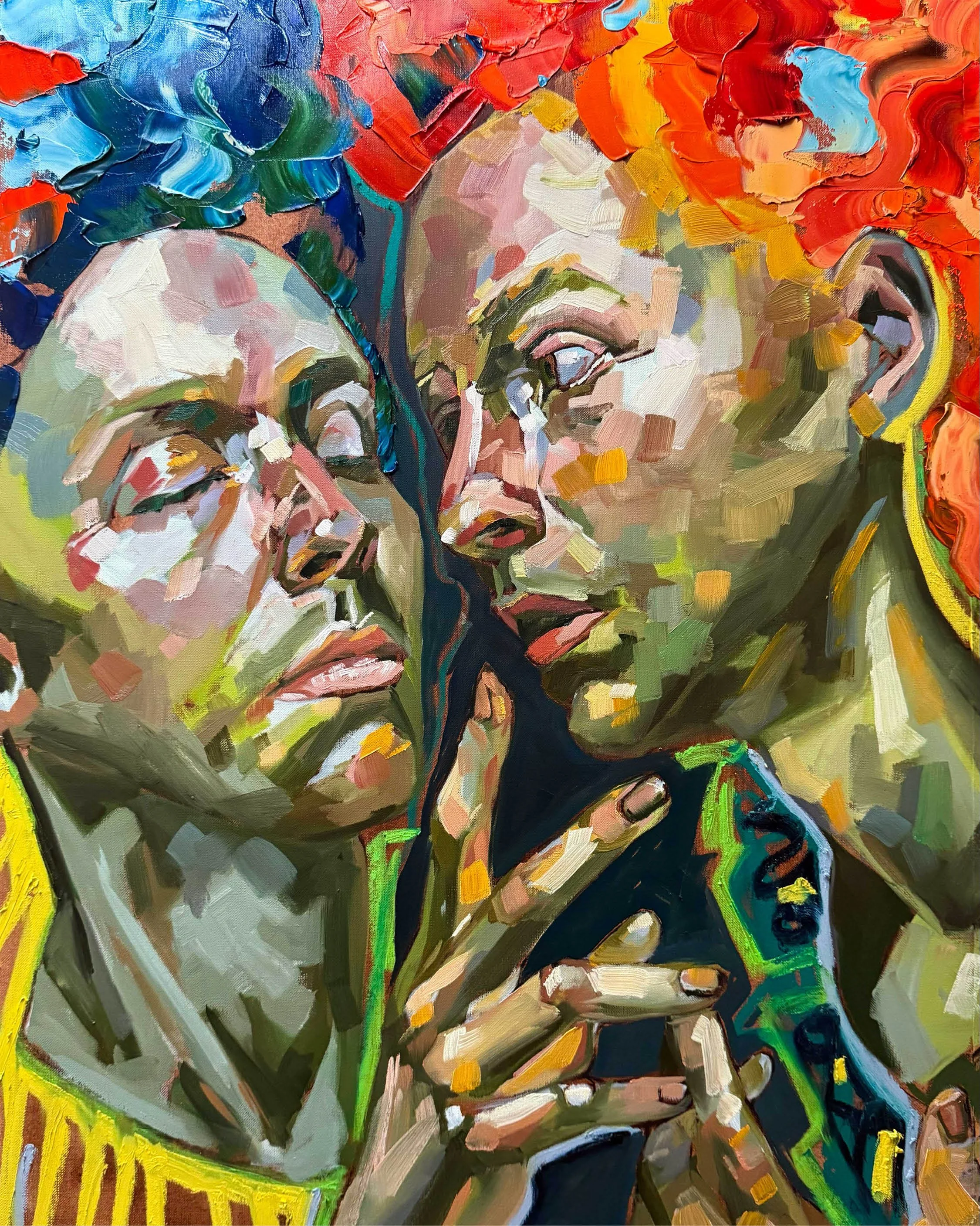 That feels especially true when I look at The Space Between Us 05 and The Space Between Us 06. These are the two works I’ll be showing as part of the RENAISSANCE Open Call at Seventh Circle in Digbeth. By the time I got to these paintings, something shifted. Five and six just landed differently. They felt like a sweet spot. They hold the tension, the closeness, the awkwardness, the silence, all the things that sit underneath that whole body of work.